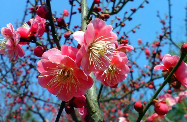 东湖磨山梅园居全国四大梅园之首,全国闻名。该园占地800余亩,地栽梅花近万株,梅花品种309个。百年以上古梅、古腊梅近200株。