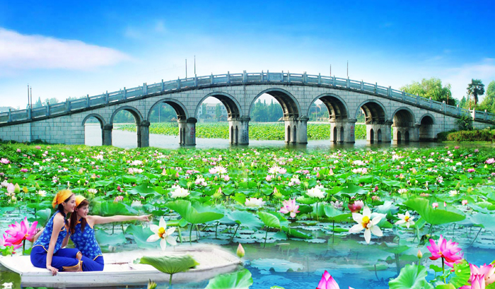 江夏法泗镇种植太空莲12万亩,每年7-8月举办的荷花节最值一看。蔡甸则打造“知音故里、莲花水乡”旅游品牌,建设了万亩太空莲产业基地和以湖面泛舟、观荷采莲为主体的蔡甸索河金龙水寨旅游景区。