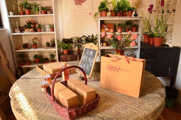 “徐刀刀和她的鲜花饼们”算是昙华林街上比较有名的店之一,店面不大,却布置得很温馨,有好多绿植。一进门就是石磨盘改成的桌子,放着包好的鲜花饼、玫瑰布丁和玫瑰汁。鲜花饼馅里有新鲜的玫瑰花瓣,据说每天只卖100个,上午10点开门营业,一般到下午1点左右,鲜花饼就卖完了。鲜花饼比较甜,适合爱吃甜食的人,如果去的时候鲜花饼卖完了,店里还有蛋挞,也是鲜花口味的。