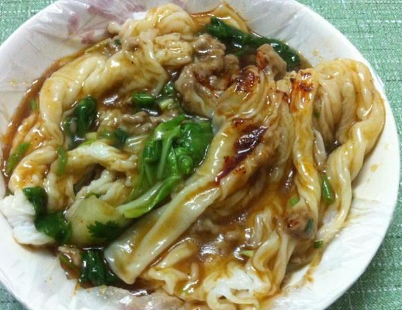 馅料一共有十几种,从四五块到十几块价格不等,自己选了虾仁口味,但目测选瘦肉鸡蛋的最多。肠粉皮很薄,里面加了新鲜生菜和5个虾仁,一份10块,出锅后浇上酱油和一种秘制小料,分量很足,一份没吃完就已经饱了……非常桑心……因为还有整条户部巷在等着我……所以告诫去他家吃的亲们,一份肠粉和好友分享一下就行,一定要保持肚子还有塞其他美食的空间。