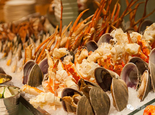 三文鱼,金枪鱼,北极贝等海鲜类食品在人体中消化的时间最长,大约两个小时,所以在食用完水果,休息三十分钟,然后直接毫不羞涩地撸海鲜,你说你要吃鸡肉什么的就是脑子被门夹了,吃自助餐不吃生鱼片怎么把成本收回来呢,所以不要多说,吃之!