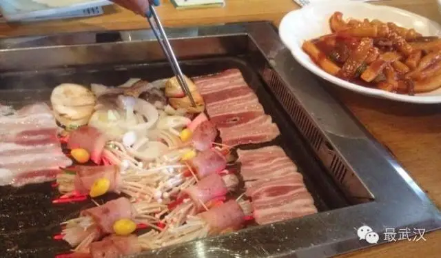几乎每一个深爱韩剧的童鞋都会看着电视剧里热火朝天的烤肉流口水吧,烤五花肉绝对是其中经典代表:在铁板上烤得滋滋作响,香味弥漫,恨不得多叫好几盘!天气渐渐凉了,贴秋膘的时候到了,憋了整个夏天,现在可不得好好吃一顿烤肉了。武汉吃货班子们,还等莫斯,走起啊!(最武汉原创)
