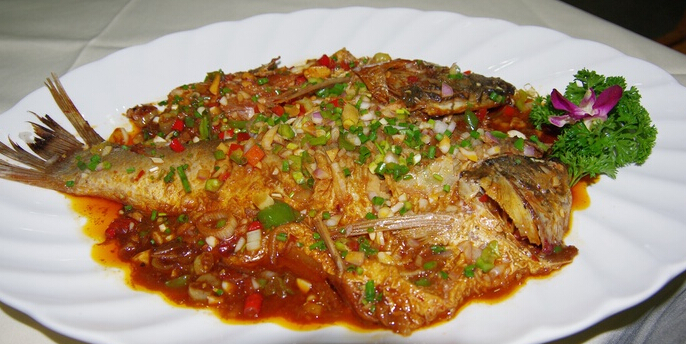 海鲈鱼、湄公鱼挺特色,鱼肉很嫩,蘸酱汁很入味。