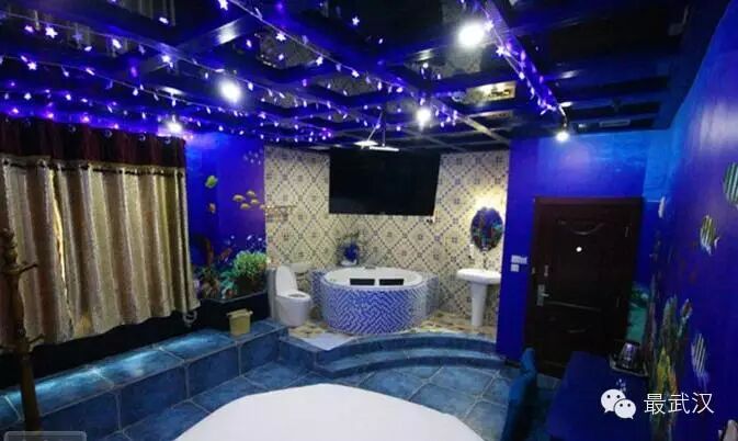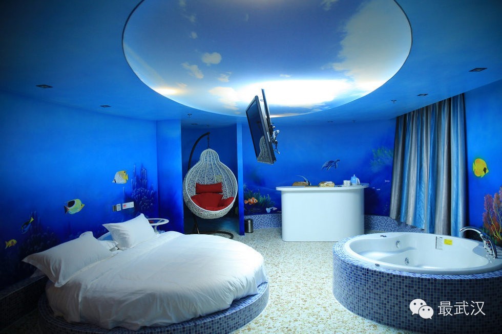 特别的床,是吸引情侣的卖点。水床最受欢迎,尤其是圆形的。老板在一面墙上镶嵌了30个缤纷电子屏,每个屏播放的都是一间主题房,特意邀请光谷专业摄影师拍摄,每间都如梦似幻。屏下都清晰标了房间名字和价格,客人一旦选中下订,服务员就会将那间房的屏幕关黑。