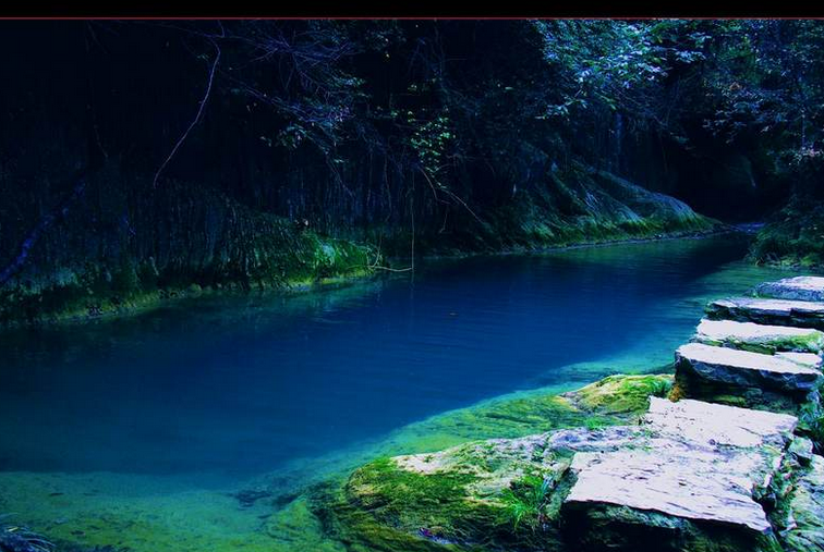香溪水冬暖夏凉,天气晴朗的时候,溪水会呈现碧绿、碧蓝的颜色。