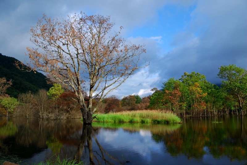 这里是一片沼泽地——山涧盆地,是亚高山的一片湿地。湿地区内,有丰富的高山草甸和湿地蕨类植物,还有鹳、鹤、梅花鹿等珍稀动物。