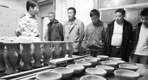 以工地上挖到了“古董”为幌子,几名工地工人找“托儿”配合喊“好”,诱惑路人购买他们仿真的“古董玉器”,向路人热情推销:“我是在附近做工的,这是在工地做工时挖出来的,很像是古董,现低价出让。”百分之百是假的,别赔了夫人又折兵。
