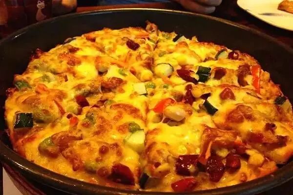 Pizza这种源于意大利的食物,像极了荆州锅盔,发酵的面粉,配上各种酱料烤制而成。但是喜欢吃披萨的都知道,当你轻轻拿起一块缀满各式蔬菜肉块的热腾腾披萨,看着如丝的芝士滑入口中,怎么能不垂涎欲滴了呢?