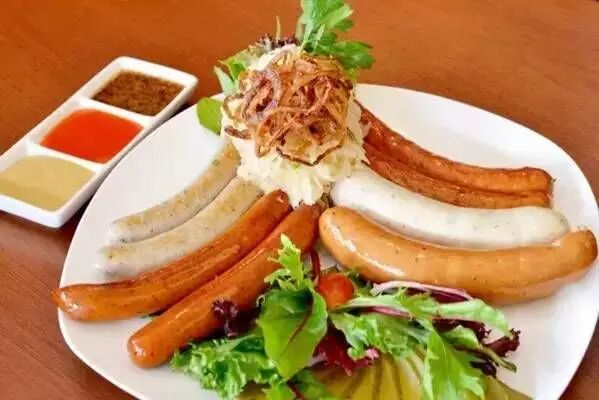 除了批萨,这里还能吃到正宗的德国香肠,伴随着土豆泥或土豆沙拉,蘸上一点甜酸酱,搭配起来的滋味不仅开胃,更让人停不下嘴。