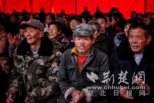 一个个极富湖北特色的文艺表演,让团风县旦店镇方新塆村的乡亲们看得目不转睛。 摄影:周俊