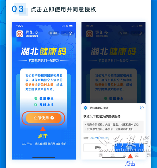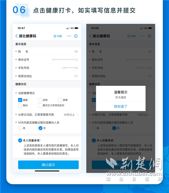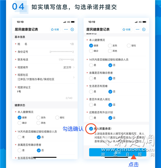 2. 如实填写信息,勾选承诺并提交,完成“湖北省居民健康登记”;