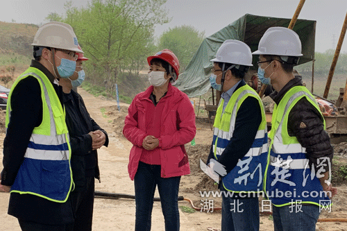 黄陂区相关领导视察复工黄陂北部旅游公路项目工地。 摄影:李子颢
