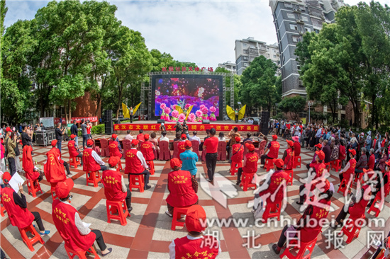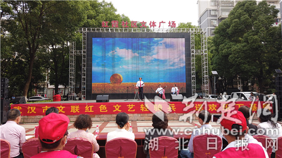 5月21日,“红色文艺轻骑兵”,走进洪山区青菱街道红霞社区。 摄影:周玮