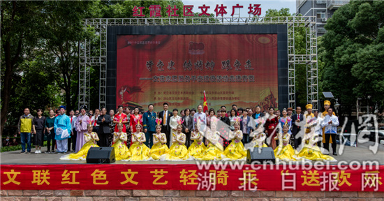 荆楚网(湖北日报网)讯(通讯员 张恒)5月21日,在毛泽东同志延安文艺座谈会上的讲话发表 79 周年、第 8 个中国文艺志愿者服务日来临之际,武汉市文联联合洪山区委宣传部、区文旅局组织“红色文艺轻骑兵”,走进洪山区青菱街道红霞社区,开展“学党史 传精神 跟党走”文艺志愿服务平安建设活动,为居民送演出、赠书法作品、开展党史知识问答,推动文艺志愿服务和党史学习教育深度融合,引导带动文艺志愿者和人民群众学史明理、学史增信、学史崇德、学史力行。