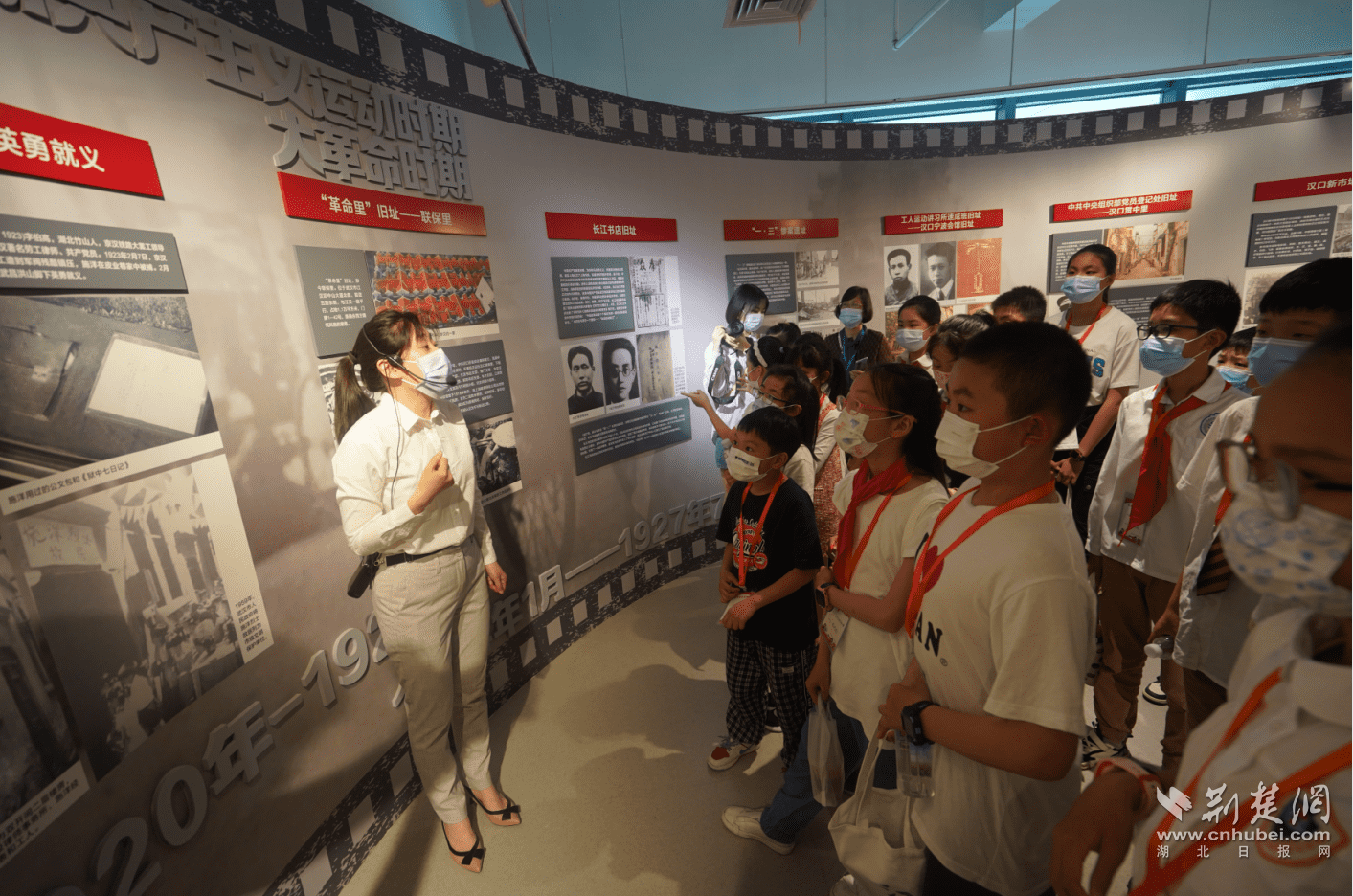 从红色党史到抗疫故事,同学们沉浸在一幅幅图片、一件件微缩模型带来的感动之中,在他们幼小的心灵中留下了深刻印象。“同学们,这里是我们学校的旧址。”红领巾学校的带队老师给来自本校的学生指出了属于他们自己的“红色印记”,大家纷纷激动地跑到展板前合影留念。