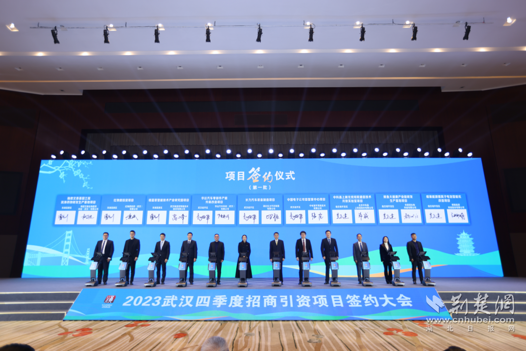 荆楚网(湖北日报网)讯(通讯员 郎锦锦)11月29日,以“奋进新时代 携手新征程”为主题的2023武汉四季度招商引资项目签约大会举行。