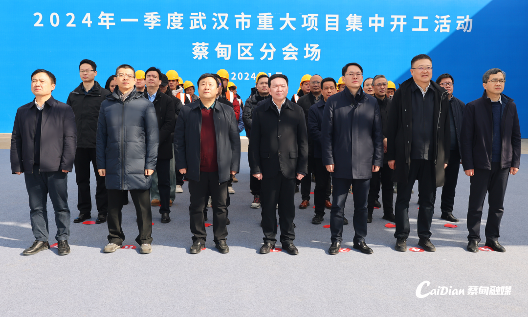荆楚网(湖北日报网)讯 (通讯员吴亭、李伟恩 摄影邓捷、付琪)1月25日,武汉市举行2024年一季度重大项目集中开工活动,在位于蔡甸经济开发区的武汉商汇融合创新产业园三期项目现场,蔡甸区一季度17个重大项目集中开工,总投资74.5亿元。蔡甸区委书记余从斌,区委副书记、区长黄元峰出席开工活动。