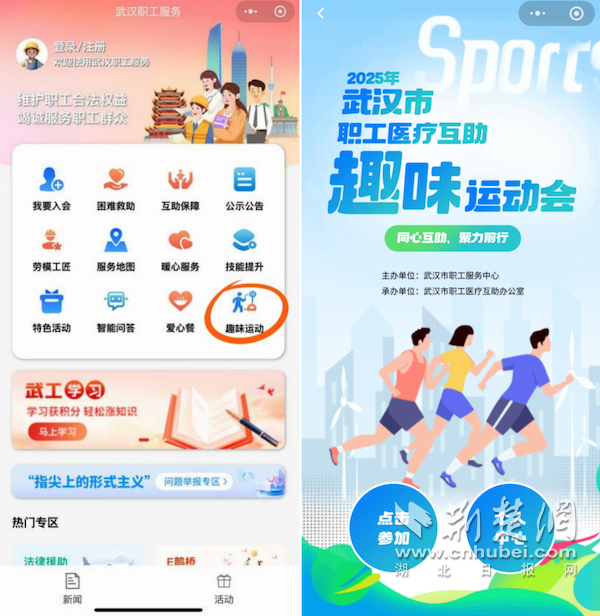参与方式:关注“武汉市总工会”微信公众号,点击公众号菜单栏“职工服务”→进入“服务大厅”→找到“趣味运动”即可参与。
