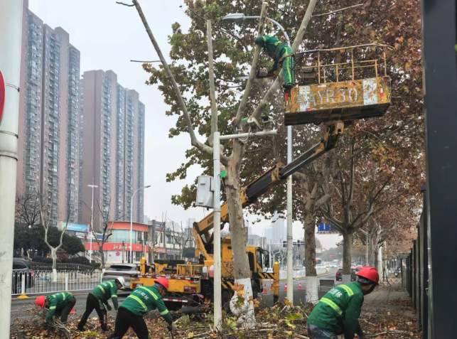 道路绿化方面,江岸区园林绿化队19日上午对三阳路法桐进行修剪,并清理了惠中社区、艺苑小区香樟的枯枝隐患。武昌区绿化队也对东湖路边被风吹歪的树木进行了扶正,降低积雪压枝风险。