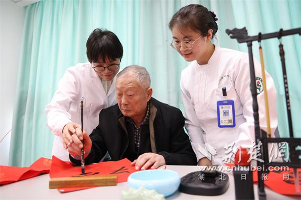 医生和患者一起挥毫写“福”字。通讯员供图