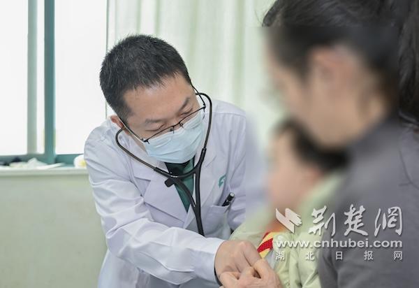 武汉儿童医院耳鼻咽喉科医生查看宝宝术后情况。张祖国 摄