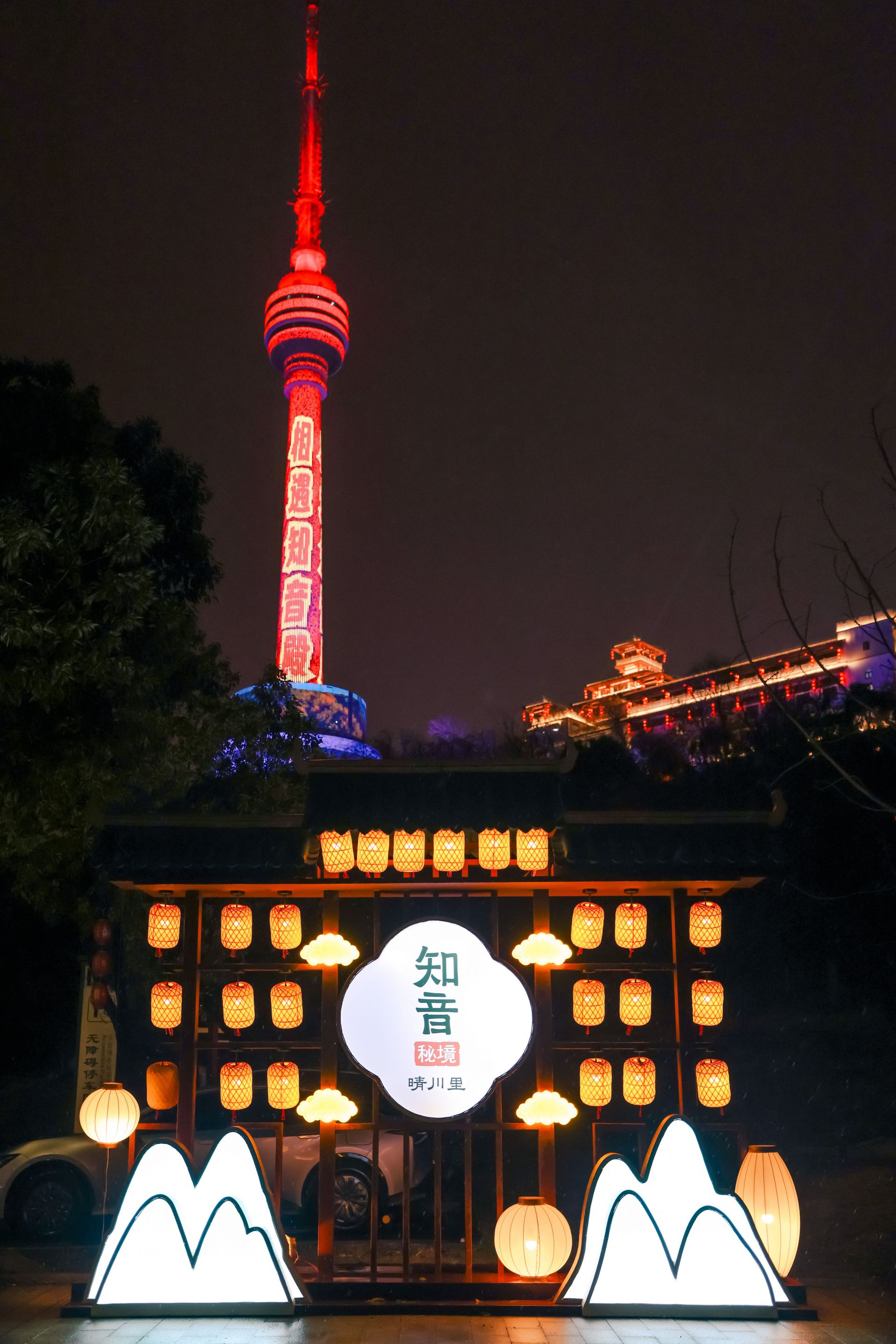 灯会的热度并未局限于一隅。记者现场采访看见,大量游客在赏灯后,自发沿龟山山道向上游览,形成了“逛灯会-登龟山-观夜景”的自然流畅动线。这束“流量之光”,精准照亮了与之毗邻的整个龟山片区,实现了“以点带线”的巧妙串联。视线沿江滩延伸至龟山山脊,“江汉揽胜”游线的成功,离不开线上两处关键节点的适时焕新与高效盘活,它们承接并放大了灯会带来的巨大流量。