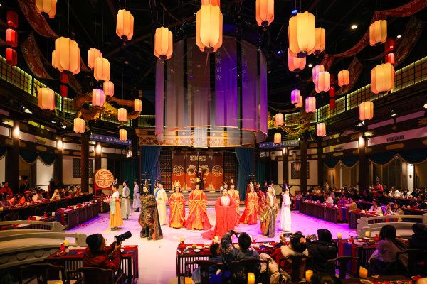 另一处则是在春节前开放运营的龟山知音殿(原计谋殿)。这座建筑在闲置逾25年后重新开放,其绝佳观景位和独特空间价值因知音文化旅游区整体热度提升而被骤然激活。2026年春节假期,知音殿作为“江汉揽胜”文旅主线核心节点,累计接待游客约10万人次,实现综合营收40.5万元。其中,沉浸式餐秀《三国群芳宴》一票难求,晚宴时段座无虚席。其影响力更辐射至国际国内舞台,在外交部发言人境外社交媒体推介及央视多个春节专题栏目中惊艳亮相。