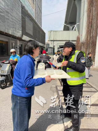 元宵当天,唐家墩营业厅工作人员走上街头,为坚守岗位的协警和环卫工人送去汤圆和节日问候。“师傅,辛苦了,吃碗热汤圆暖暖身子。”一句朴实的话语,让节日的关怀在寒风中更显温暖。