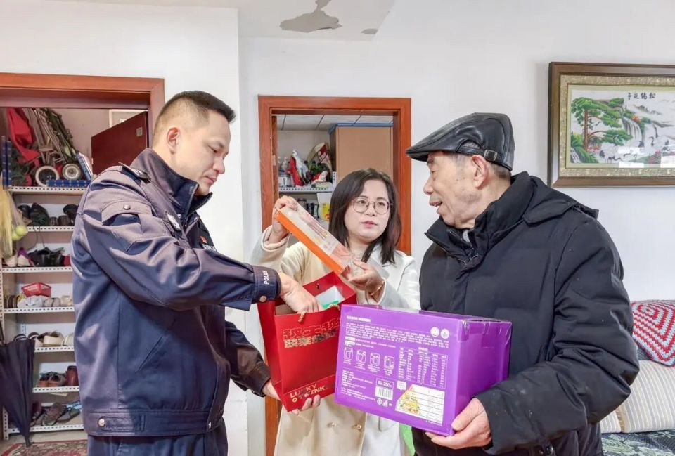 在欢乐的节日氛围之外,跃莱公益团队更惦记着社区里需要特别关爱的群体。活动期间,在社区民警兼党委副书记邱爽的带领下,跃莱公益负责人胡巍及团队成员专程上门走访慰问了社区内的高龄老人。