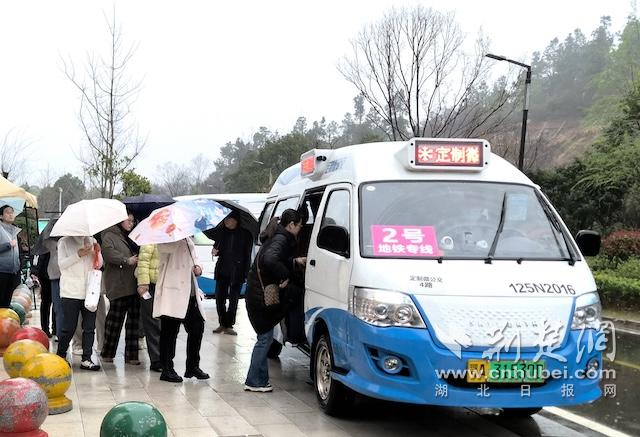 荆楚网(湖北日报网)讯(通讯员 万建国 刘亭 马乐军 虞朵 实习生 黄筱晗)3月18日,尽管天空飘雨,黄陂区盘龙城山海观小区门口却洋溢着一派暖意与喜庆,经过两天试运营后,两台身披红绸的“宝宝巴士”准时发车,搭载着首批乘客分别驶向地铁2号线盘龙城站和地铁7号线汤云海路站。而在定制微公交的起点,小区物业廖女士一边撑着伞,一边用手机记录小区同时开通两条便民新线的“高光”时刻。她高兴地表示:“以前去地铁站不太方便,现在有了这两条定制微公交,还能网上买票,刮风下雨都不愁了,真的方便很多!”