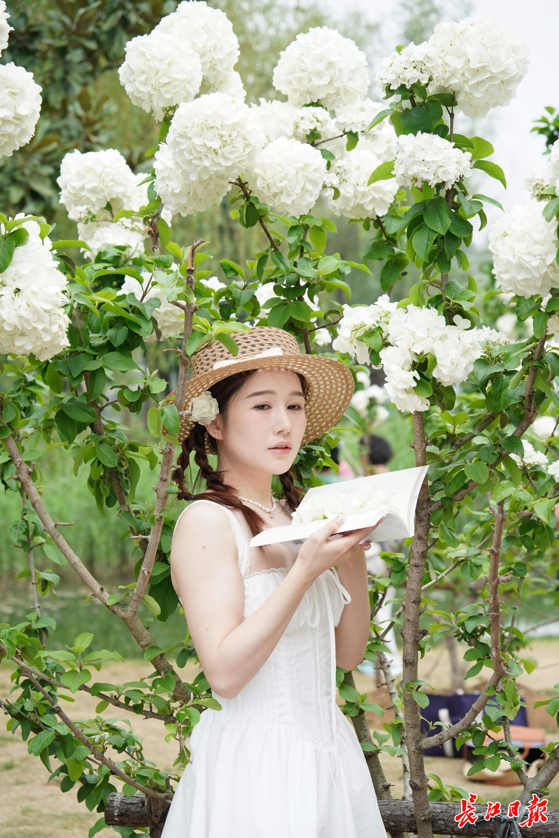 沙湖公园木绣球迎来盛花期,游客漫步花间,感受春日美好。 记者詹松 摄