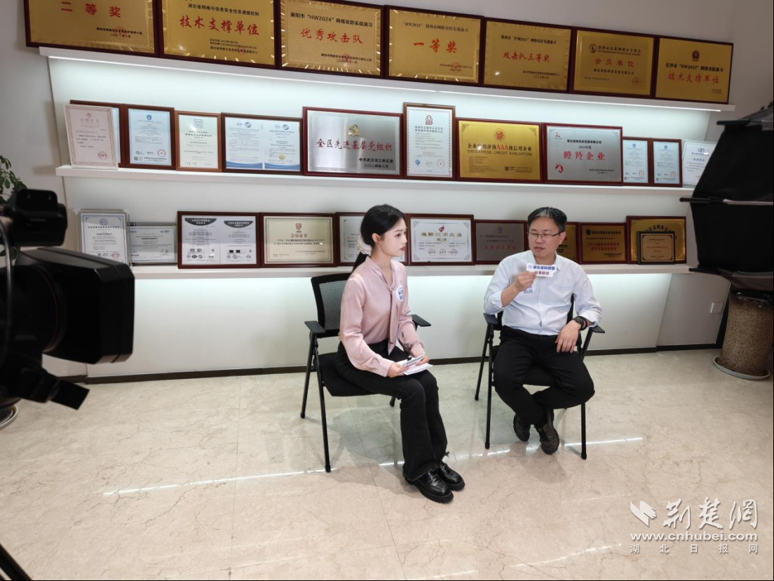 随后,镜头跟随翟舒婉探访荣誉墙与办公环境,介绍公司与武汉大学网安学院共建联合实验室的情况,以及作为省市两级技术支撑单位参与攻防演练的经历,随后邀请湖北珞格科技发展有限公司安全负责人李旻带领观众感受攻防实战。