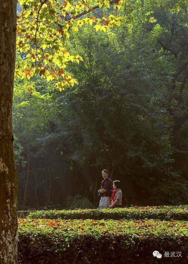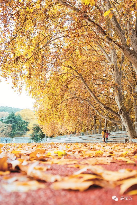 武汉大学的法国梧桐落叶铺满了整个校园,普通的操场似乎也染上了一丝浪漫情怀。