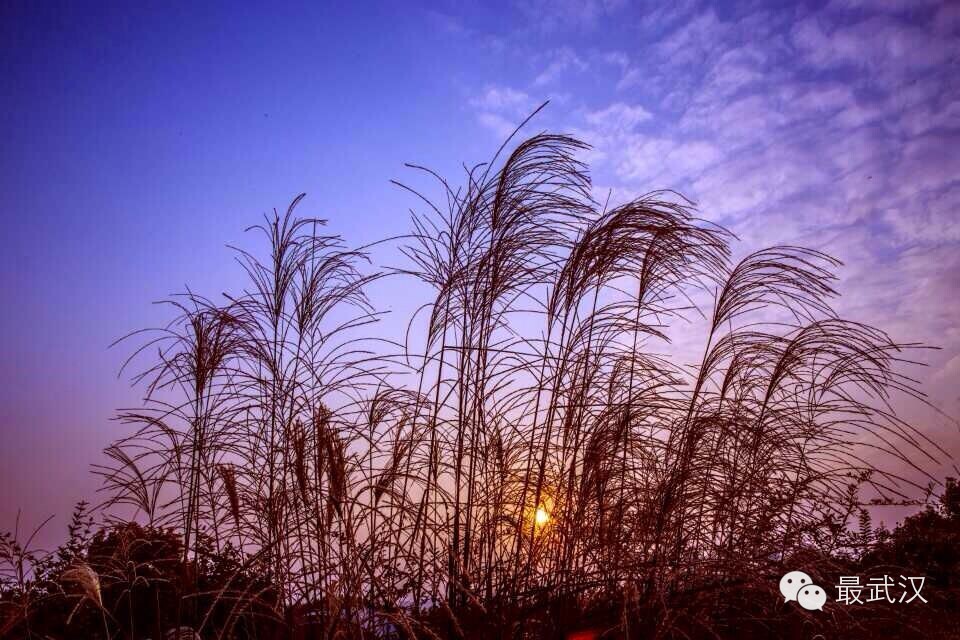太阳的余辉给芦苇镀上了一层金色。
