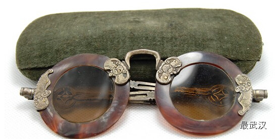 博物馆就在武汉市中南路精益眼镜店,穿过千篇一律的现代眼镜柜,沿着旋转楼梯拾级而上到三楼,推门就进入了一个截然不同的眼镜天堂——古朴温润的天然玳瑁眼镜,做工精美的胸针项链眼镜;雕花镂空镜腿,黄金白银镜框……眼镜之美,在这里展现得淋漓尽致。