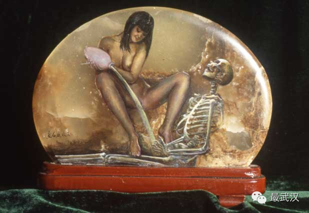 馆长王永庭在自家客厅里收藏了一万多件石画艺术品。馆内的数千件女性人体画,将女性的柔美体态在顽石上抒发得淋漓尽致。