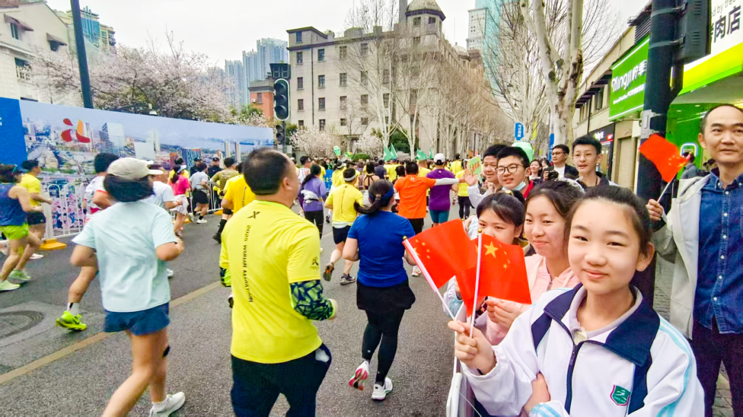 与马拉松选手热情互动