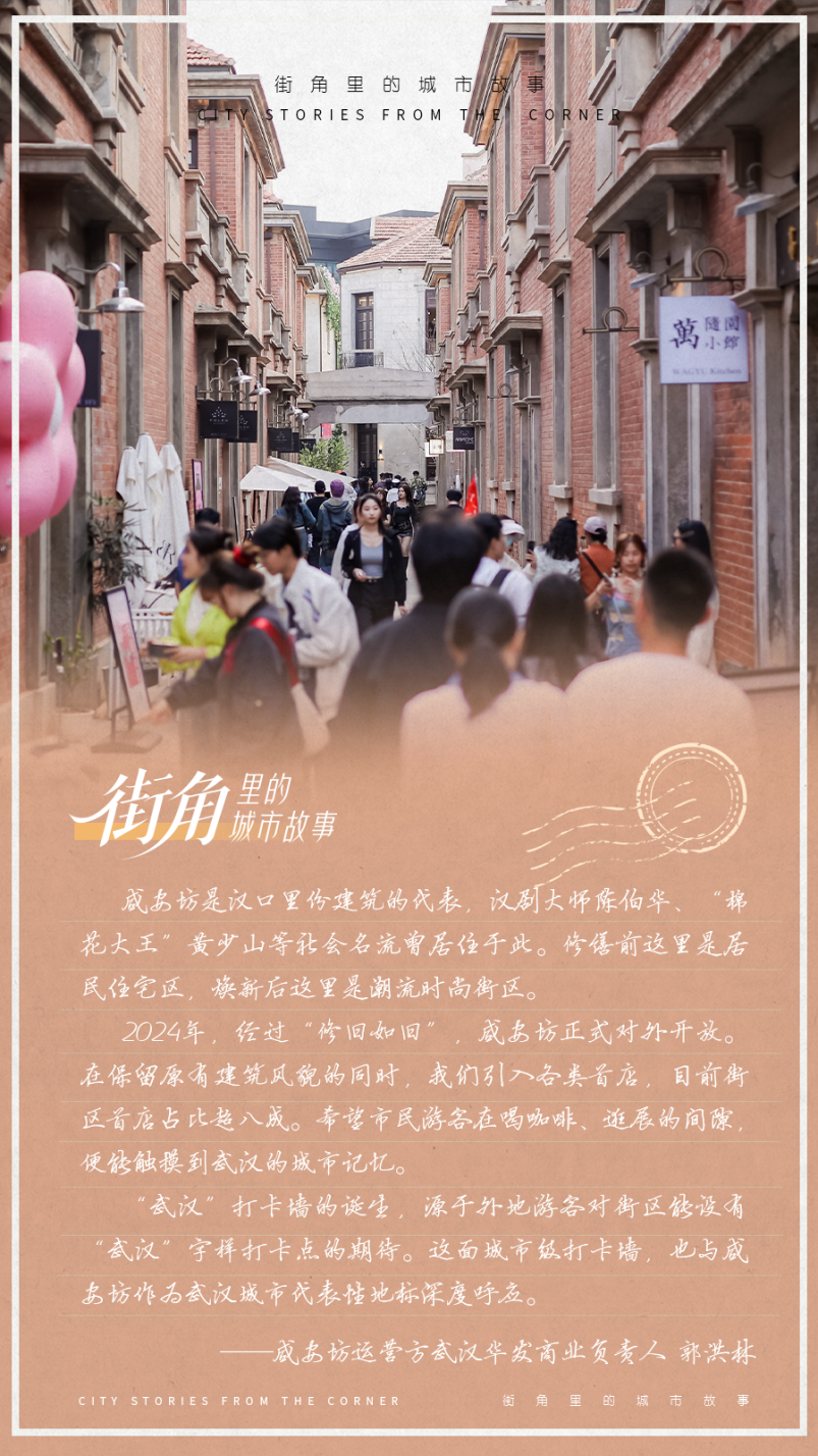 历史街区注入首店经济。“我们从咸安坊出发,在这里第一次把‘热干面玩偶’的创意变成了现实。”全员饿人负责人游媛说,选择将全国首店开在这里,是看中了咸安坊作为历史建筑所独有的文化底蕴,同时承载着武汉市井生活记忆。“我们在此获得了意料之外的市场反馈,也顺利将品牌推广到其他6家商圈。”