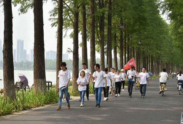 荆楚网消息(通讯员吴茜)6月9日,武汉东湖绿道开展了一场以“宁美国度,为爱行走”为主题的公益徒步行动。图片由通讯员提供