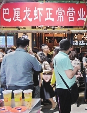 4月25日傍晚,汉口万松园雪松路上的巴厘龙虾店门口不少食客在排队长江日报记者詹松 摄