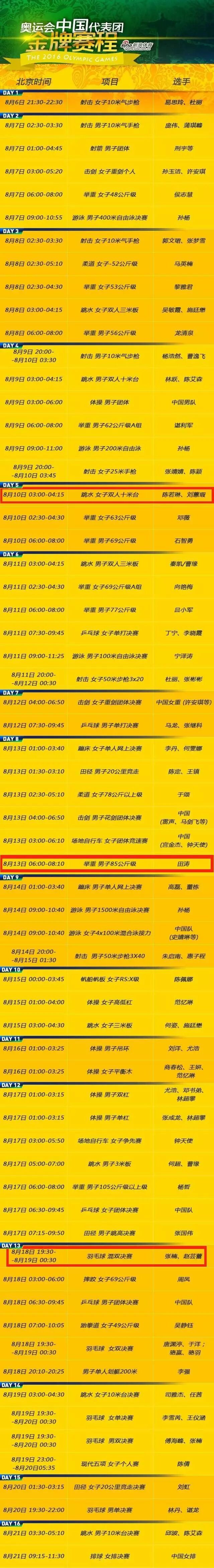 (注:湖北夺金小将的赛程由红色标志圈出)