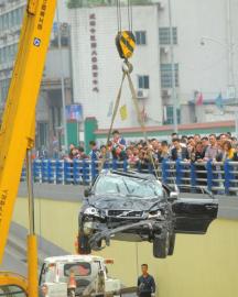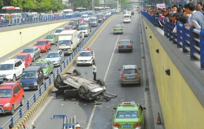 幸运:越野车坠落瞬间没有砸到其他车辆,连环撞车事故也未造成严重伤亡。