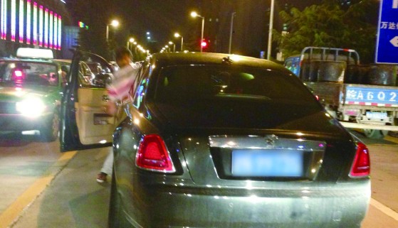 前方2米由东向西的车道上停着一辆黑色劳斯莱斯轿车,左后侧车身位置被刮花,蹭掉了一些漆。劳斯莱斯车挂着上海牌照,司机是一名年轻男子。 “我只是一名司机,这车价值500多万,是公司老板的,虽然只掉了一些漆,但是我也得报警。 ”司机说道。