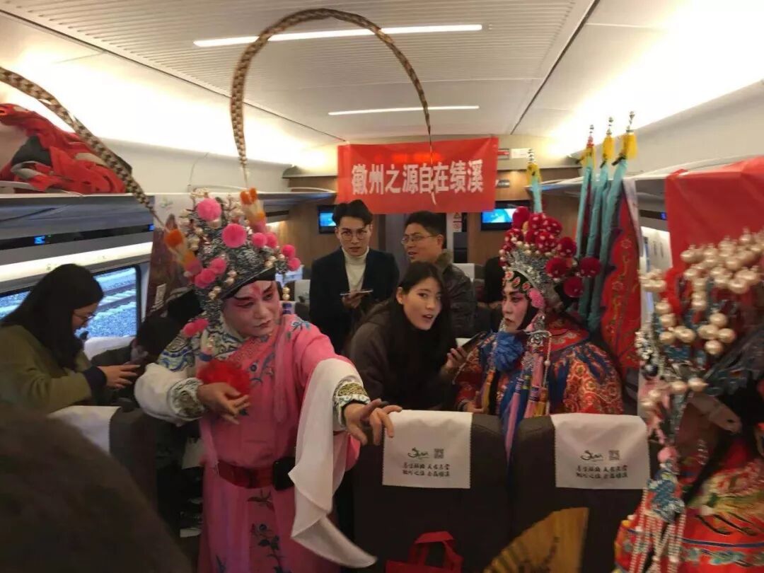 》》首发列车上,徽州地区的各种表演推介