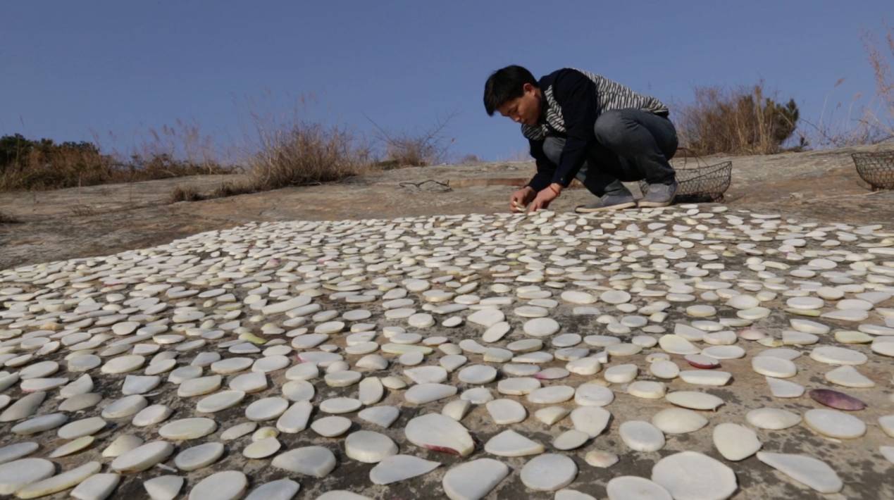 余小刚和媳妇一块,把吃不完的萝卜从地里拔回来,洗干净后切成片,再挑到后山上的石头上去晒,经过几天的日晒夜露,就晒成了容易保存的萝卜干。